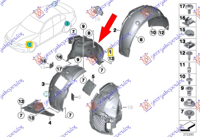 prednji unutrašnji blatobran (zadnji dio) za BMW SERIJA 3 (F34) GT 12-20 - OEM: 51717288908