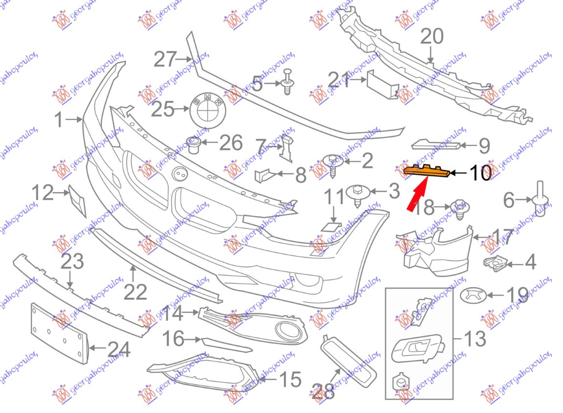 bočni nosač prednjeg branika (plastični) dojnji ( M-SPORT) – Каросериски дел за BMW SERIJA 4 (F32/36/33/) COUPE/GR.COUPE/CAB., од 14-20 година
