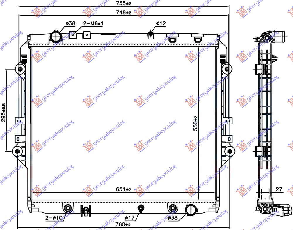 hladnjak 2.4/2.8 D dizel automatski (550x650x27) za TOYOTA HI-LUX 2WD/4WD 20- - OEM: 164000L361
